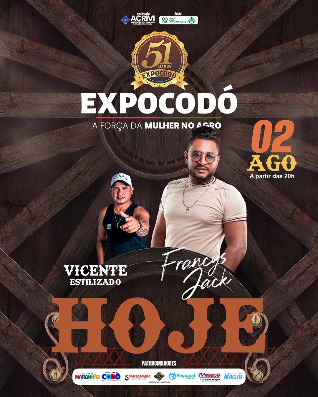 Penúltimo dia da ExpoCodó promete agitar com shows de Francys Jack e Vicente Estilizado!