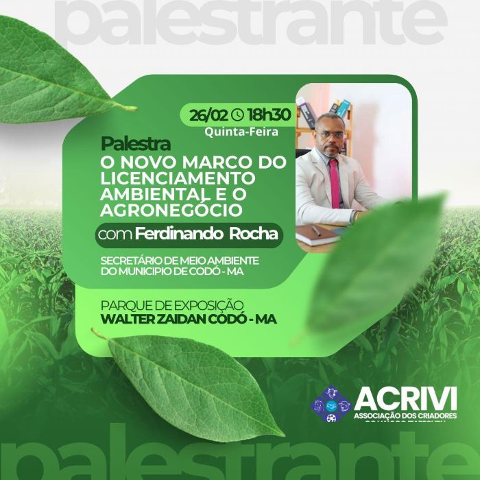 Economia ACRIVI realizará palestra ‘O Novo Marco do Licenciamento Ambiental e o Agronegócio’ com secretário Ferdinando Rocha Uma palestra imperdível para quem vive o agro e se preocupa com o futuro ambiental! No dia 26/02, quinta-feira, às 18h30, acontecerá a palestra “O VER POSTAGEM » 24 de fevereiro de 2026 Nenhum comentário
