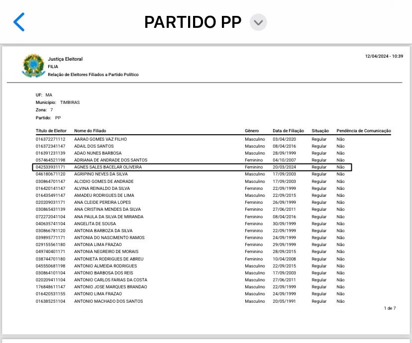O deputado estadual Francisco Nagib resolveu colocar a esposa, Agnes Oliveira, em um partido político em Timbiras. O partido escolhido foi o PP e com isso os aliados do pré-candidato a prefeito de Timbiras, Neguinho das Flores, estão apavorados e desconfiados. O temor reside na realização de uma pesquisa para a escolha do candidato majoritário da chapa a qual ele pertence, onde já se vislumbra uma possível “rasteira”. Segundo eles mesmos, o candidato seria quem aparecer melhor nas pesquisas entre Neguinho e João dos Plásticos.