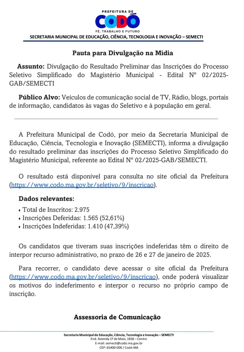 Veja neste link o ACESSO AGORA à lista dos professores aprovados no Seletivo Simplificado da Secretaria Municipal de Educação de Codó.